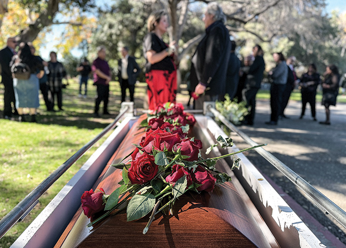 Magdalena Serrato at her father Al Villanueva’s January 15 memorial service at Oak Park Cemetery.