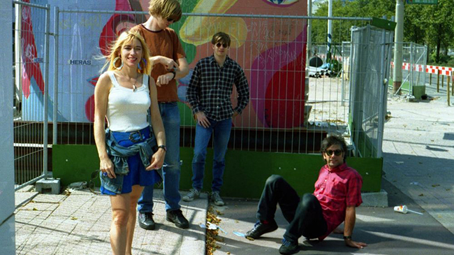 (L-R) Sonic Youth’s Kim Gordon, Thurston Moore, Steve Shelley, and Lee Ranaldo in a still from “1991: The Year Punk Broke.” Photo/by Dave Markey