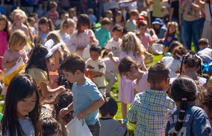 Three-year-old Samuel Stannislaus (right) was among hundreds of children hunting for Easter eggs Saturday at Claremont’s spring egg hunt. Courier photo/Andrew Alonzo