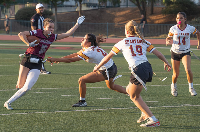 Claremont High School’s girls flag football team defeated the visiting Spartans of La Canada, 34-6, Tuesday in the first round of the California Interscholastic Federation-Southern Section Division IV playoff tournament.
