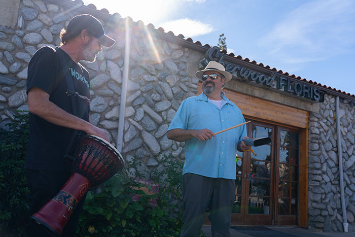 That sentiment was echoed by Upland’s Doug Brown, who played his djembe drum alongside with accompaniment from cowbell player Adam Bosler, from Glendora.