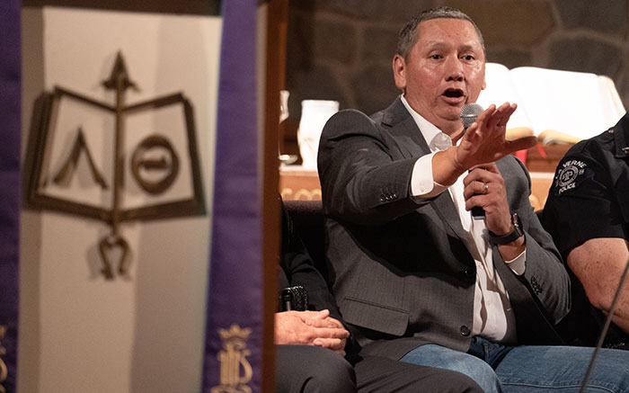 Pomona Mayor Tim Sandoval during the March 18 discussion about ICE at Claremont Presbyterian Church. Courier photo/Andrew Alonzo