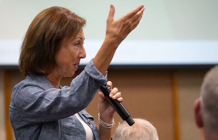 Claraboya resident Connie Fuentes during Monday’s community meeting. Courier photo/Andrew Alonzo