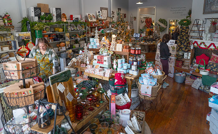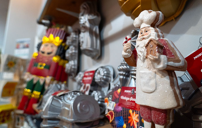 Holiday décor and kitchen ware line the shelves of The Hens’ Kitchen Shoppe. Courier photo/Andrew Alonzo