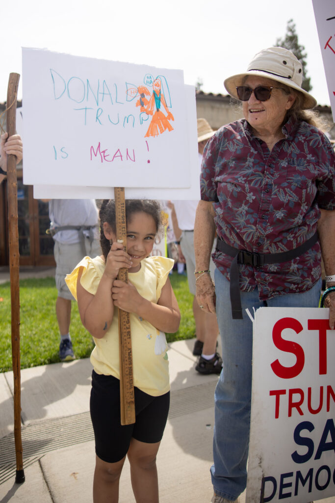 The March 28 “No Kings” protest drew multiple generations, including this youngster toting a sign with a simple message. Photo/by Jessie Cadenas