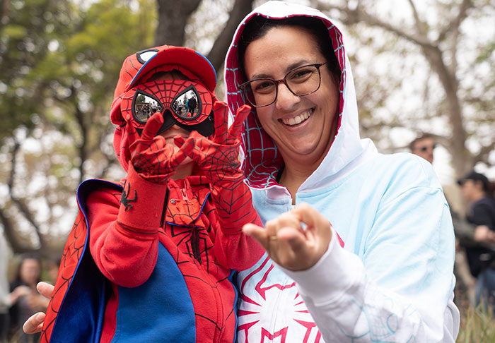 (L-R) Miles Andres and Gal Andres dressed as webslingers during the 2025 Village Venture Arts and Crafts Festival Saturday.