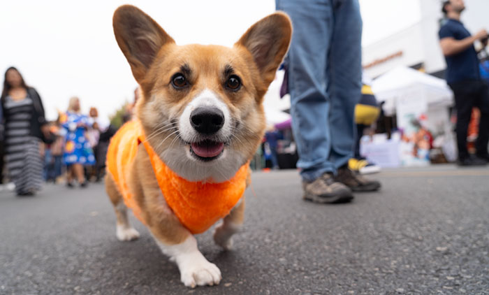 Lila the corgi walked the Village Venture costume parade in the morning.