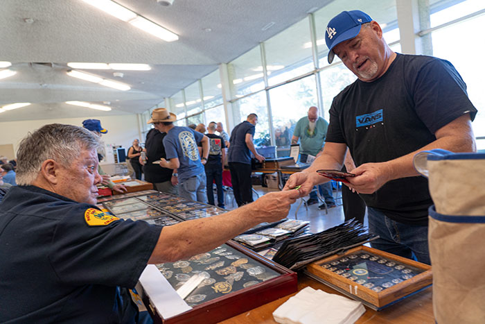 Jesse Cardenas showcases memorabilia from the LA Police Department’s Freeway Flyers division at the January 17 Porky Show. Courier photo/Andrew Alonzo