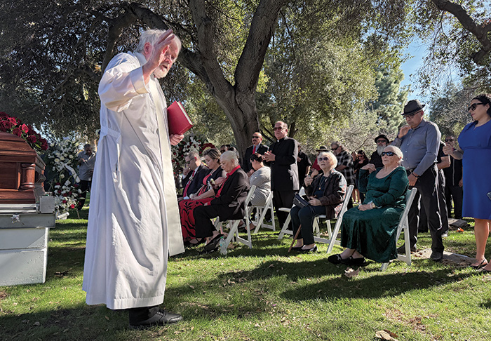 Father Matthew Cumberland begins Al Villaneuva’s January 15 memorial service at Oak Park Cemetery with a prayer.
