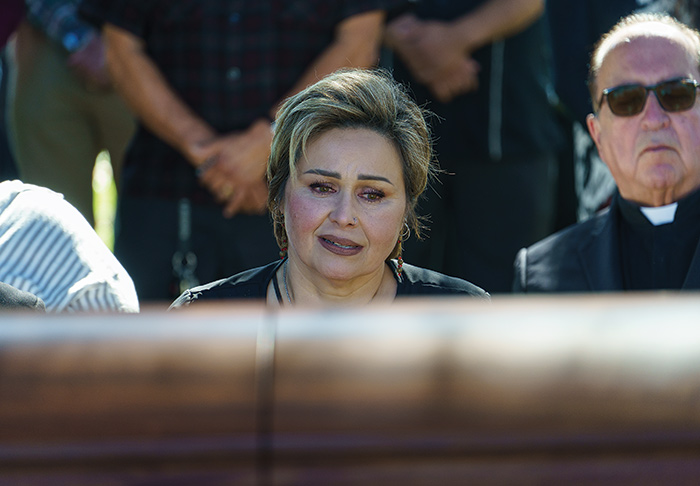 Magdalena Serrato at her father Al Villanueva’s January 15 memorial service at Oak Park Cemetery.