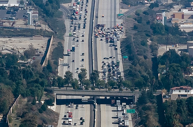 The eastbound 210 freeway just west of the Campus Avenue off-ramp in Upland was closed Monday as the investigation into the shooting death of a SB County Sheriff’s deputy and subsequent motorcycle crash continued. Courier photo/Peter Weinberger