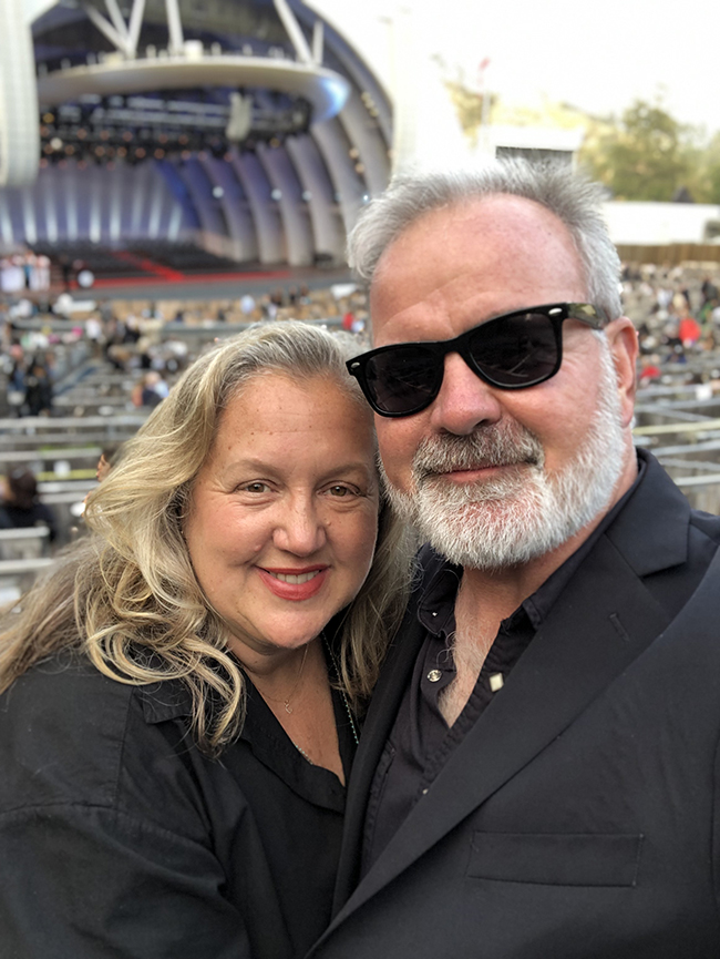 Christine Moore and Mick Rhodes at the Hollywood Bowl in June 2019.