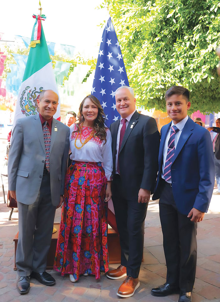(L-R) Claremont Mayor Corey Calaycay, Guanajuato, Mexico Mayor Samantha Smith, Claremont City Council member Sal Medina, and Alex Gomez at a sister city signing ceremony in Guanajuato on November 17. Photo/courtesy of Corey Calaycay