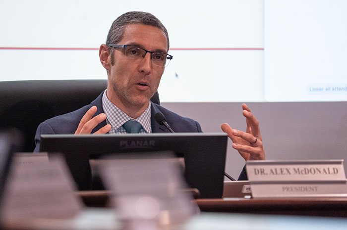 Claremont Unified School District Board of Education President Alex McDonald at the January 15 meeting. Courier photo/Andrew Alonzo