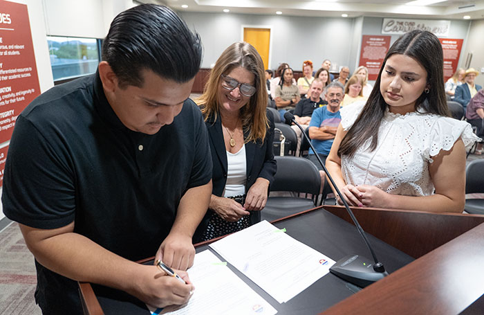 • welcomed Claremont High School senior Samantha Gutierrez and San Antonio High School senior Andres Zamora Jr. as student board members for the 2025-26 school year.
