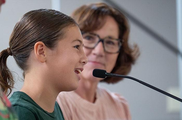 Sycamore Elementary sixth grader Emily Lord helps to deliver the school’s plan for student achievement at the September 18 CUSD Board meeting. Courier photo/Andrew Alonzo