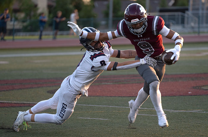After a 99-yard touchdown drive midway through the fourth, the Eagles were back in the game, trailing 17-12. With 6:06 to go, Capistrano returned an onside kick to Claremont’s 33 yard line. The Eagles drove all the way to the one-yard line, but the Wolfpack defense held firm, culminating with defensive end Jordan Fyffe stopping Capistrano’s ball carrier for a six-yard loss.
